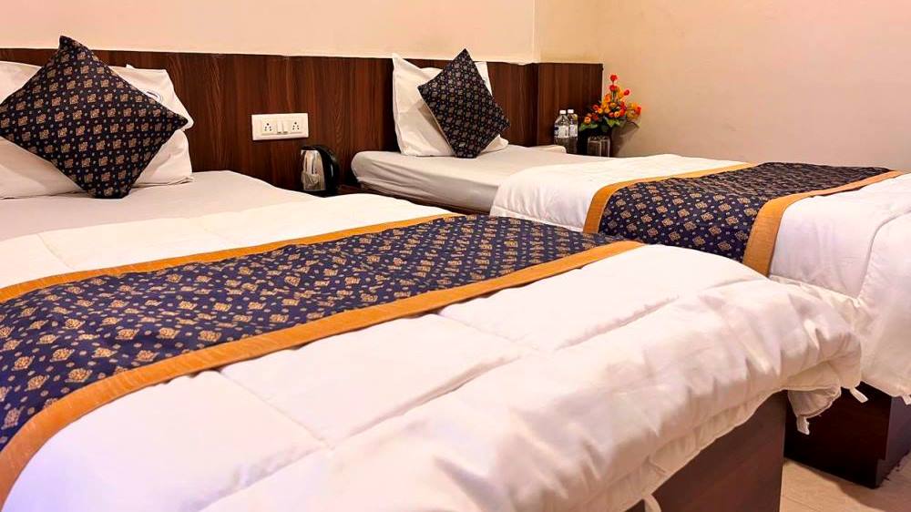The room is thoughtfully designed for your comfort, featuring two separate beds, a dressing table, a spacious cupboard and an attached bathroom. Enjoy 24/7 access to hot and cold water along with complimentary Wi-Fi. The tariff includes meals and access to rejuvenating wellness treatments. Additionally, relax in the common sitting area, perfect for socializing or watching television with fellow guests.